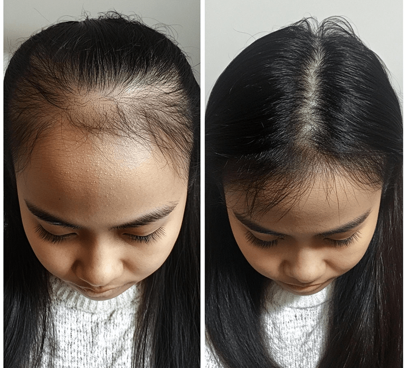 In clinical studies exploring women's oral and topical hair renewal approaches with hormonal support and follicle-strengthening therapy, up to 60% of participants reported improvements in hair density, reduced shedding, and fuller scalp coverage over several months. These results highlight that multi-pathway approaches using ingredients such as oral spironolactone, minoxidil, and biotin combo can support healthier hair cycles when guided by a licensed women's health provider.